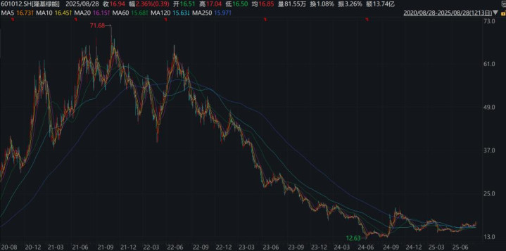 券商普遍认为,光伏行业“反内卷”有望推动产业链价格及盈利修复。二级市场端,截至8月27日,隆基绿能收盘于16.55元/股(不复权),较2021年2月高位下挫近九成。